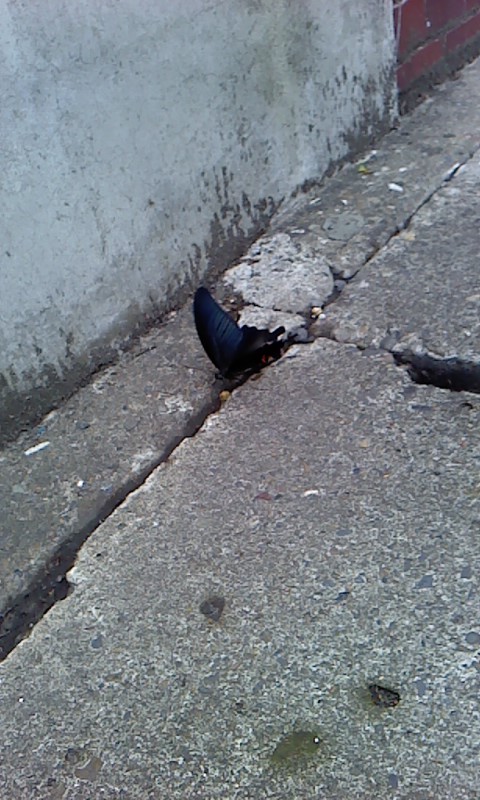 画像は帰り道見つけた低空飛行のクロアゲハ?
