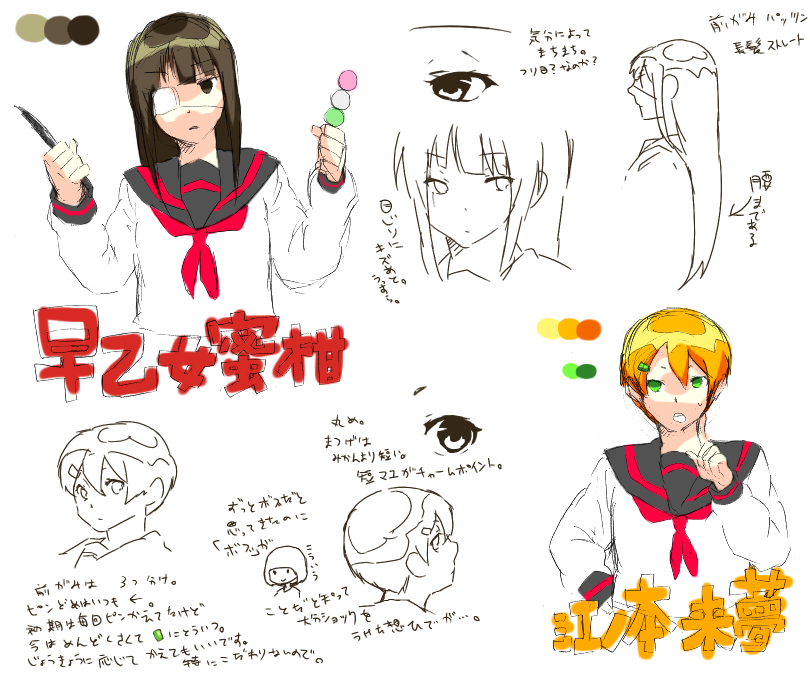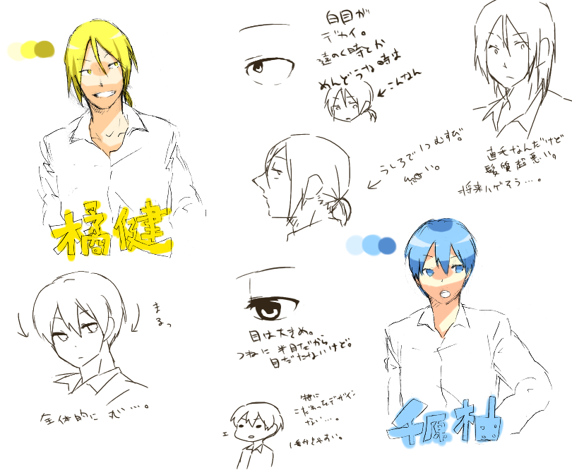 キャラ設定詳細は、デザインについてとかです。色とか。描きわけとか。